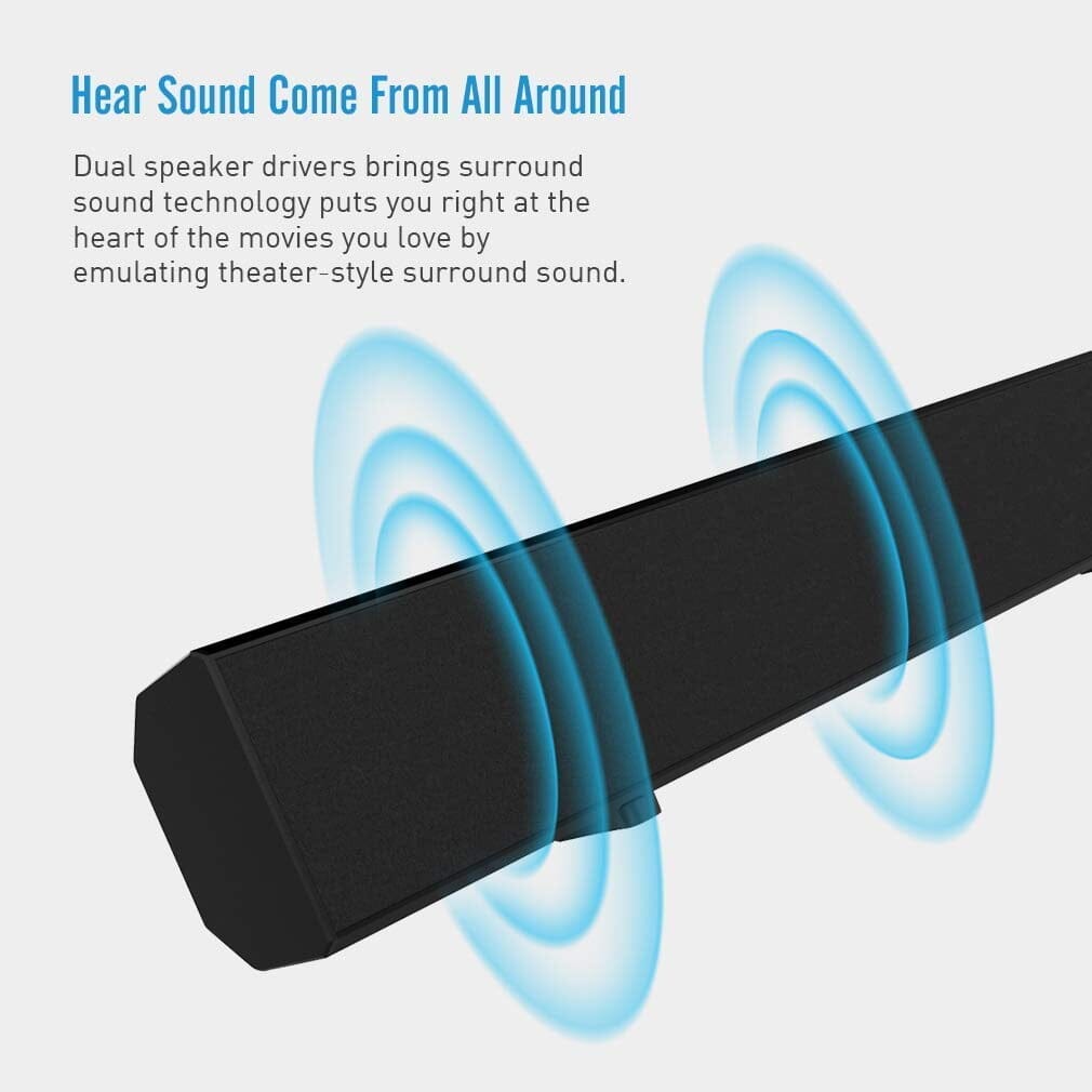 Product Feature TV Soundbar: Sound bar features dual 15w speakers to deliver clear excellent stereo sound.It has excellent sound quality and distortion-free at maximum volume,delivers...